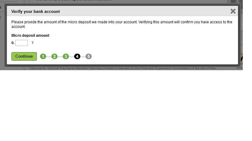 6. Kliknite na “Continue” da biste potvrdili valjanost kreditne kartice ili “Close” da biste poništili potvrdu valjanosti kartice.